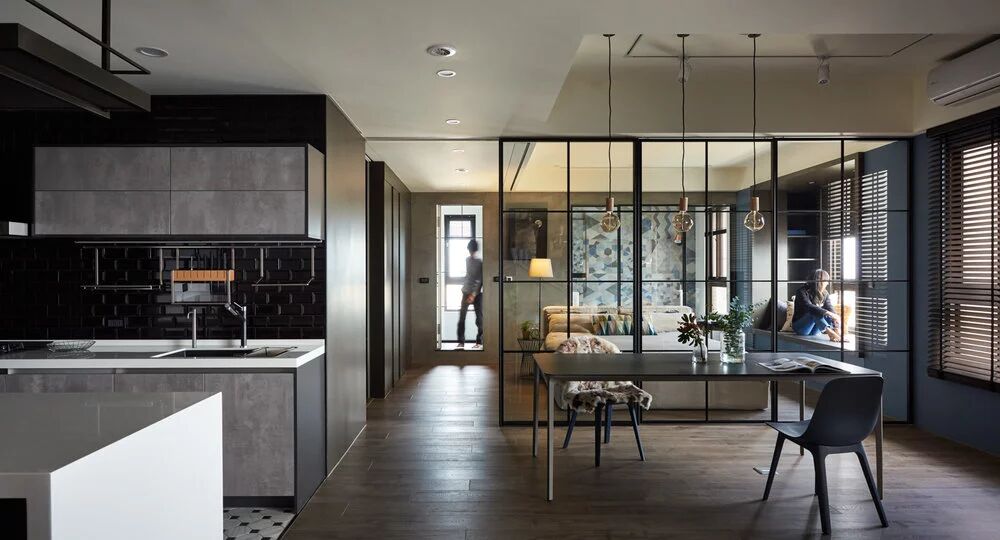 此外,男主家的開放式廚房也設(shè)計得別具一格。